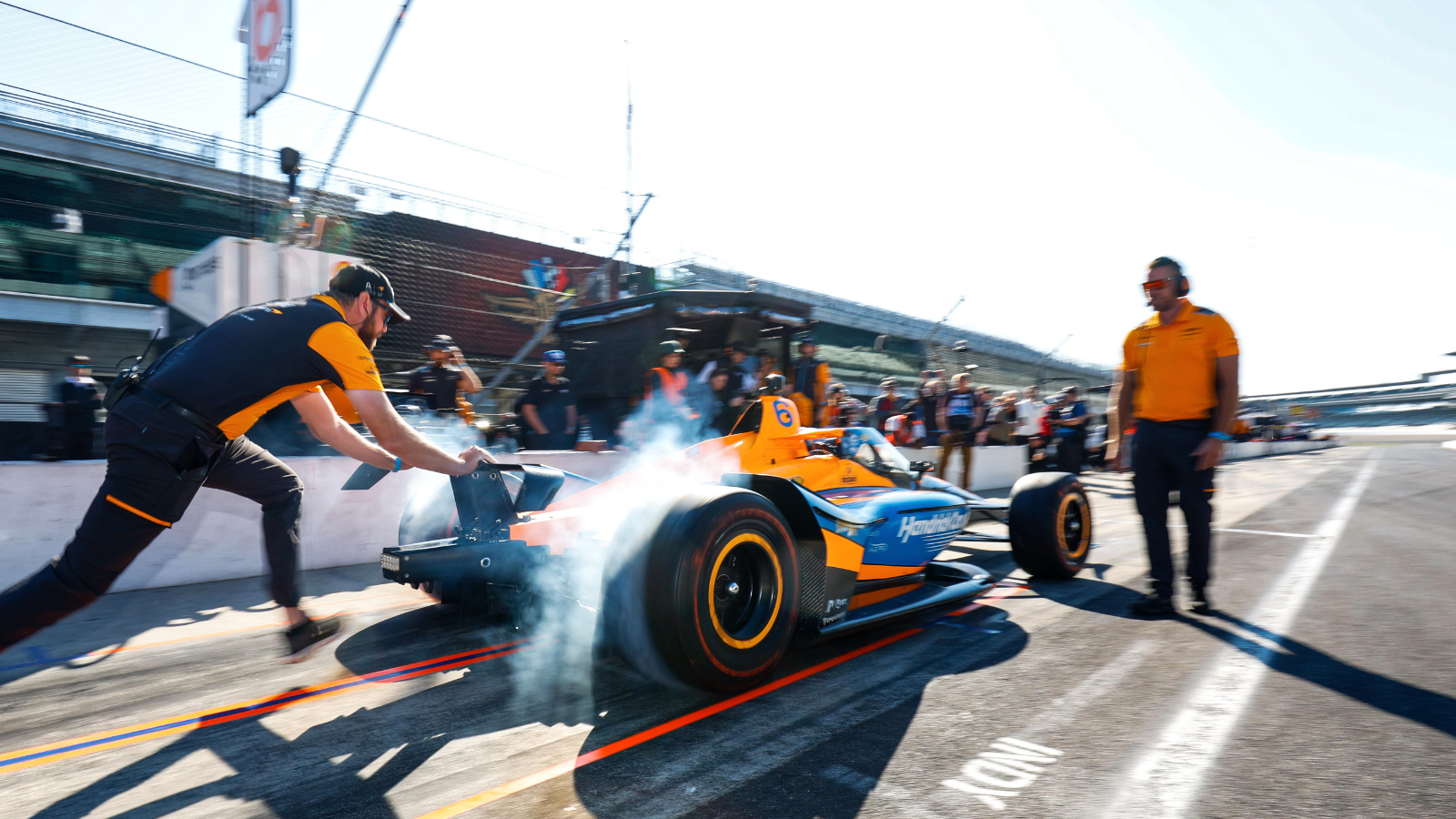 Larson peels out to take his first laps around Indianapolis Motor Speedway. Photo: IndyCar - Joe Skibinski