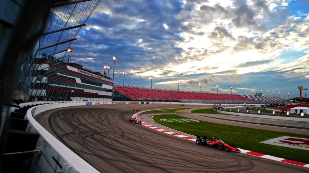 IndyCar took to the banked oval of World Wide Technology raceway on Saturday evening for the weekend’s lone practice session, which was delayed due to rain throughout the afternoon.