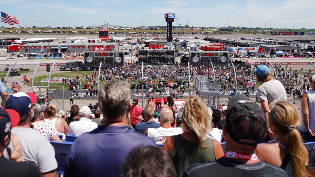 Iowa’s grandstands provide excellent views of the concert stage as well as the racetrack. Photo: Kevin Dejewski