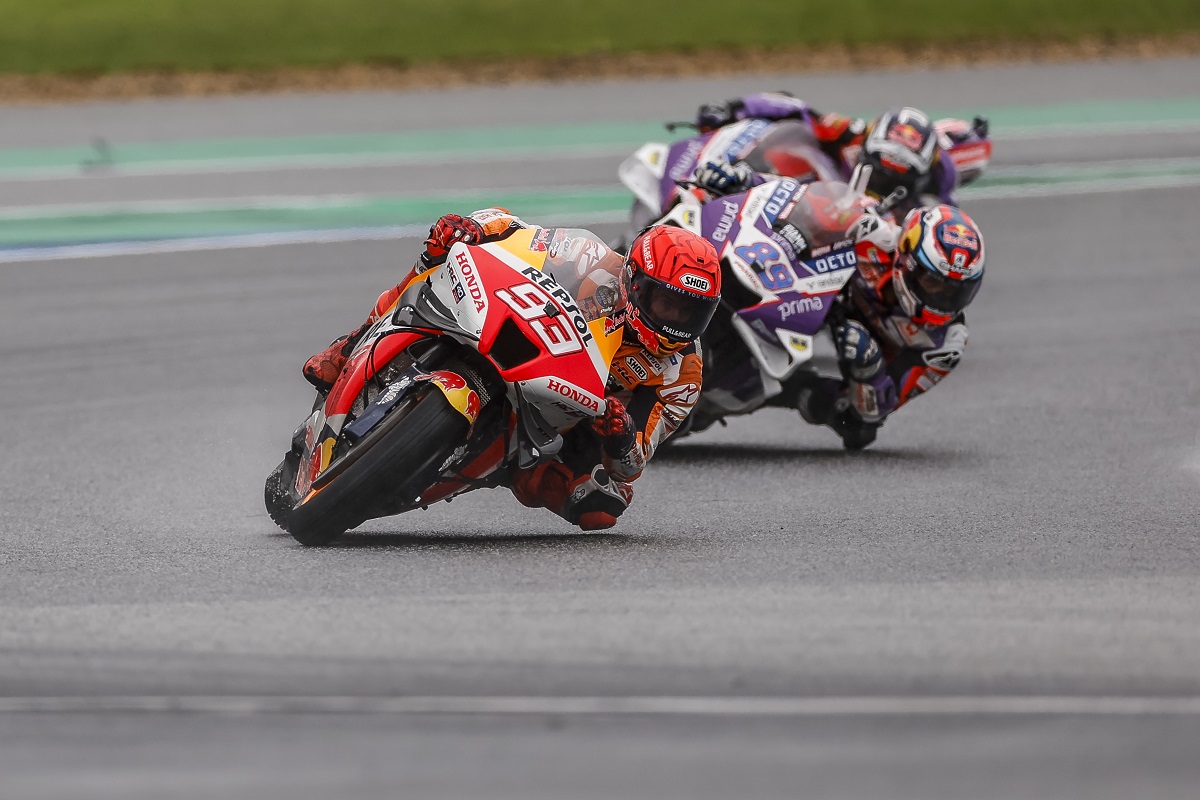 Having passed pole-man Marco Bezzecchi for fourth less than half-a-dozen laps into the event, Marquez later closed down third-placed Francesco Bagnaia though found himself unable to mount a serious attack for the final spot on the rostrum – the six-time premier class world champion ultimately losing fourth to a charging Johann Zarco in the closing stages.